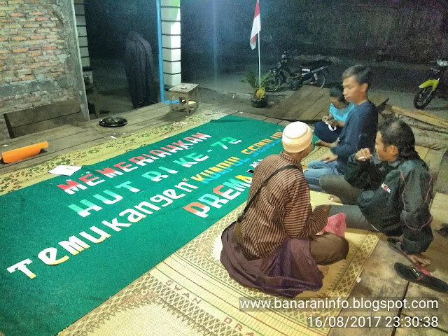 pada malam yang bersamaan di malam 17 Agustus 2017 di sinilah warga Dusun banaran IV dalam mempersiapkan segala sesuatunya persiapan dokorasi panggung guna untuk persiapan acara malam pentas untuk memeriahkan Hut RI Ke-72 yang akan terselenggara di hari Kamis 17 Agustus 2017 malam hari/ malam Jum'at.